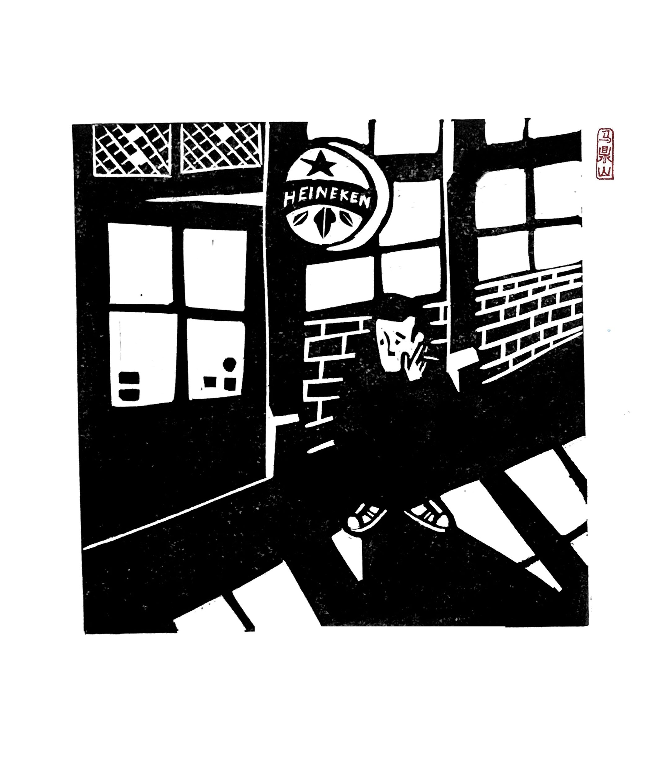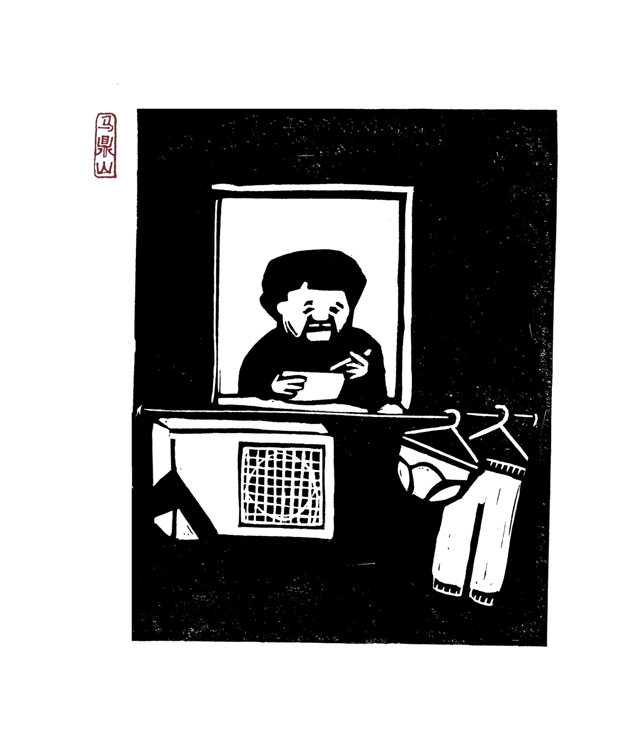 Linograbados impresos a mano. Parte de las series Loser Back Home (Shanghai, 2018), Outbreak (Shanghai, 2020) y The Opposite of Suibian (Amsterdam, 2021).